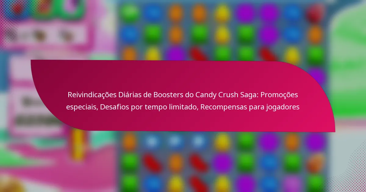 Os impulsionadores diários no Candy Crush Saga frequentemente vêm com promoções especiais que melhoram a jogabilidade através de desafios de tempo limitado e recompensas para os jogadores. Estas promoções normalmente incluem bónus únicos, eventos especiais e oportunidades para ganhar impulsionadores adicionais.
