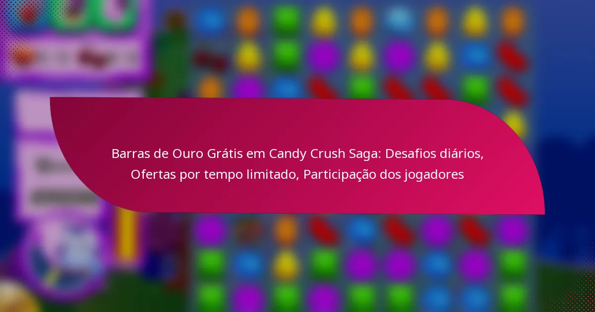 A participação dos jogadores aumenta significativamente as chances de ganhar barras de ouro gratuitas em Candy Crush Saga. Envolver-se em desafios diários, eventos comunitários e ofertas por tempo limitado não só recompensa os jogadores, mas também fomenta uma comunidade de jogo vibrante.